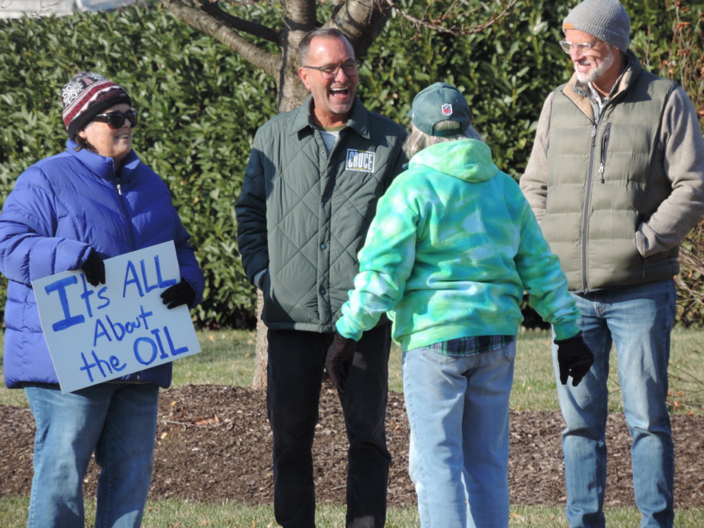 Robert Bahnsen, a current candidate for state representative, joined the protest because he found it “unacceptable” that members of the American military, including Delawareans, were going to have their lives put in danger “so that Trump can fulfill his backdoor promise to a bunch of billionaires to give them an entire foreign state and their oil.” He felt that Delaware and its elected officials, “as a solidly Blue state,” are in a position to “stand up and be more vocal about what’s going on in the world.”