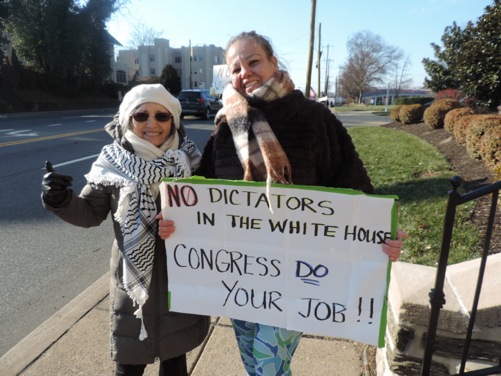 Ingrid Ocampo, a local woman from Venezuela, agreed with Representative Burns’ sentiment. She held a sign that said “NO DICTATORS IN THE WHITE HOUSE. CONGRESS DO YOUR JOB!!!” as her friend translated her thoughts from Spanish for her for this article. Ingrid said yesterday morning she was immediately afraid for those who lived in Venezuela. Ocampo “knows for a fact that the intervention was not to help the people of Venezuela,” and felt that people that were hopeful were “mistaken” and “ignorant” to think that the current government of the United States was interested in “doing good”. She reflected on the “stupidity” of those she had seen celebrating the intervention on the news and thanked others at the protest for organizing and showing up to support Venezuelans.